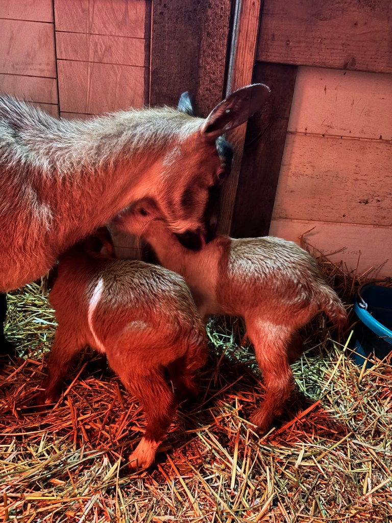 Standing in that stall, watching two tiny goats wobble into life, it felt like the weight of winter loosened its grip just a little. Like something cracked open and let the light back in.